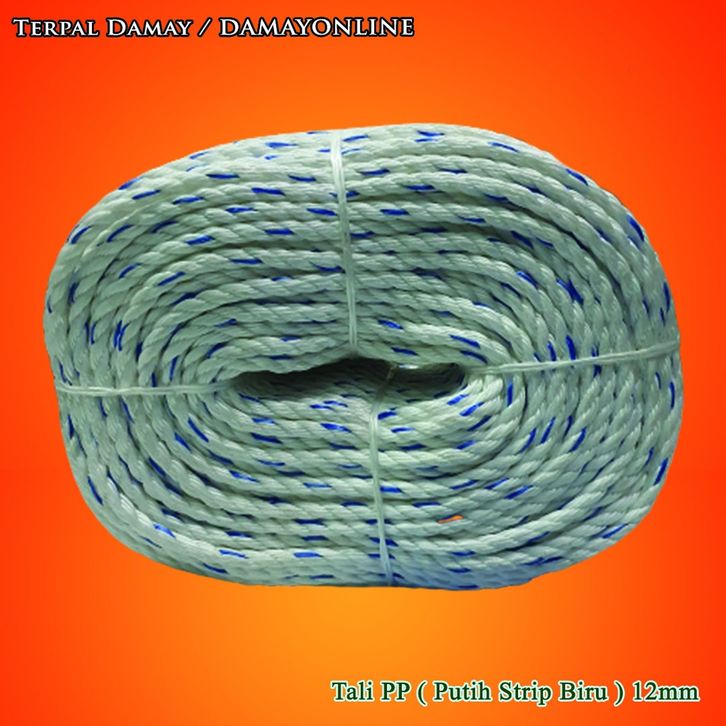 Tali Tambang 12mm Putih Strip Biru / Rol ( Harga Per Rol )