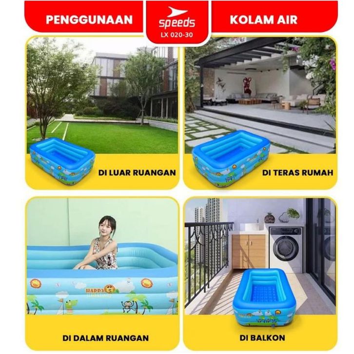 Kolam renang anak 210x140x56cm 3 ring layer motif kolam renang portable inflatable swimming Pool