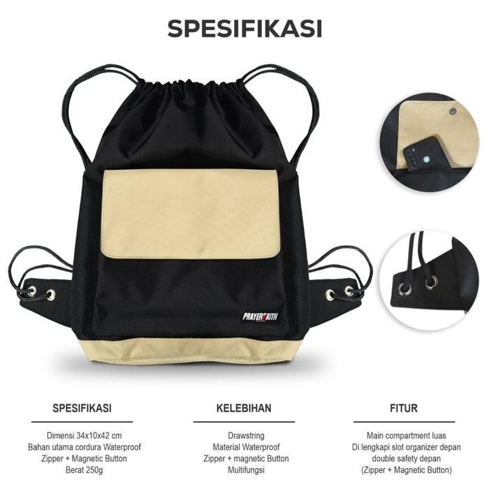 Tas Ransel Sekolah Backpack Punggung Pria Wanita Bahan Cordura Anti Air - Prayerfaith - Hitam