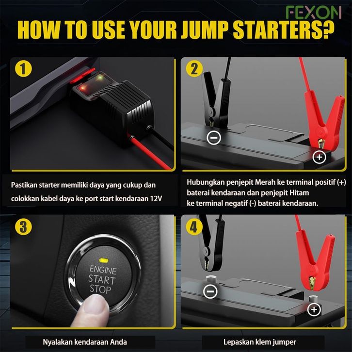FEXON Jumper Starter Aki Mobil Power Bank 10000mAh Mini Output DC 12V Car Emergency High Power