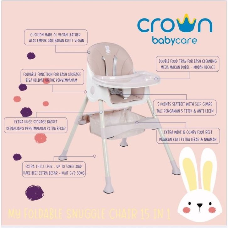 CROWN Snuggle Foldable Chair 15in1 CR228 || Kursi Makan Bayi