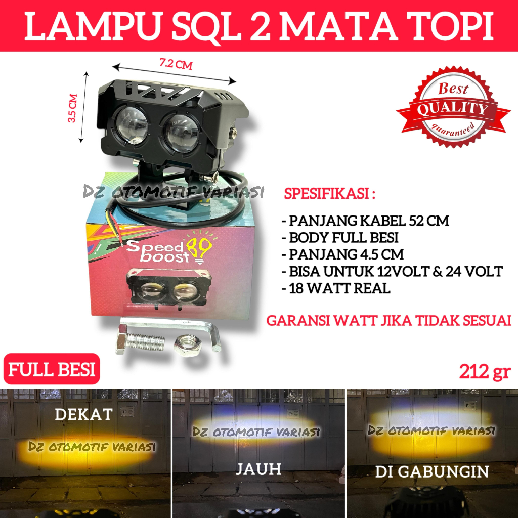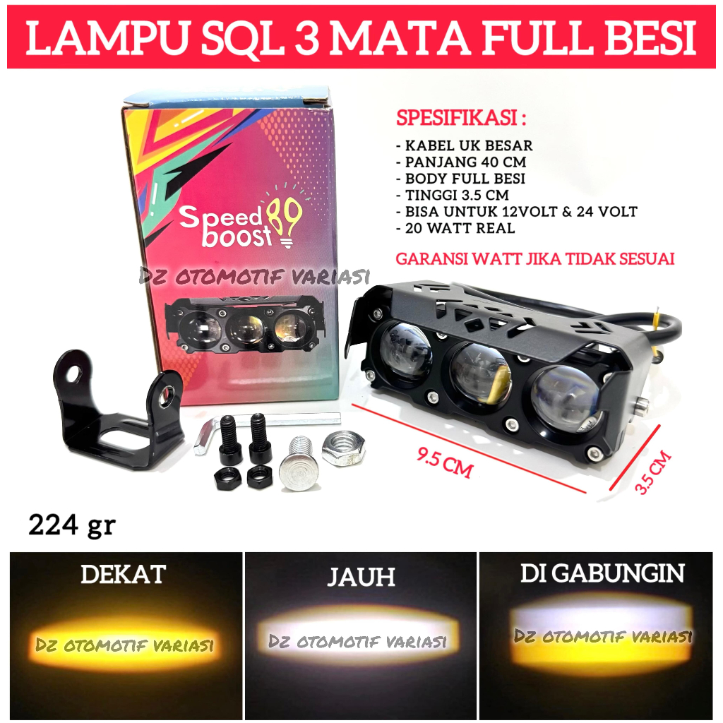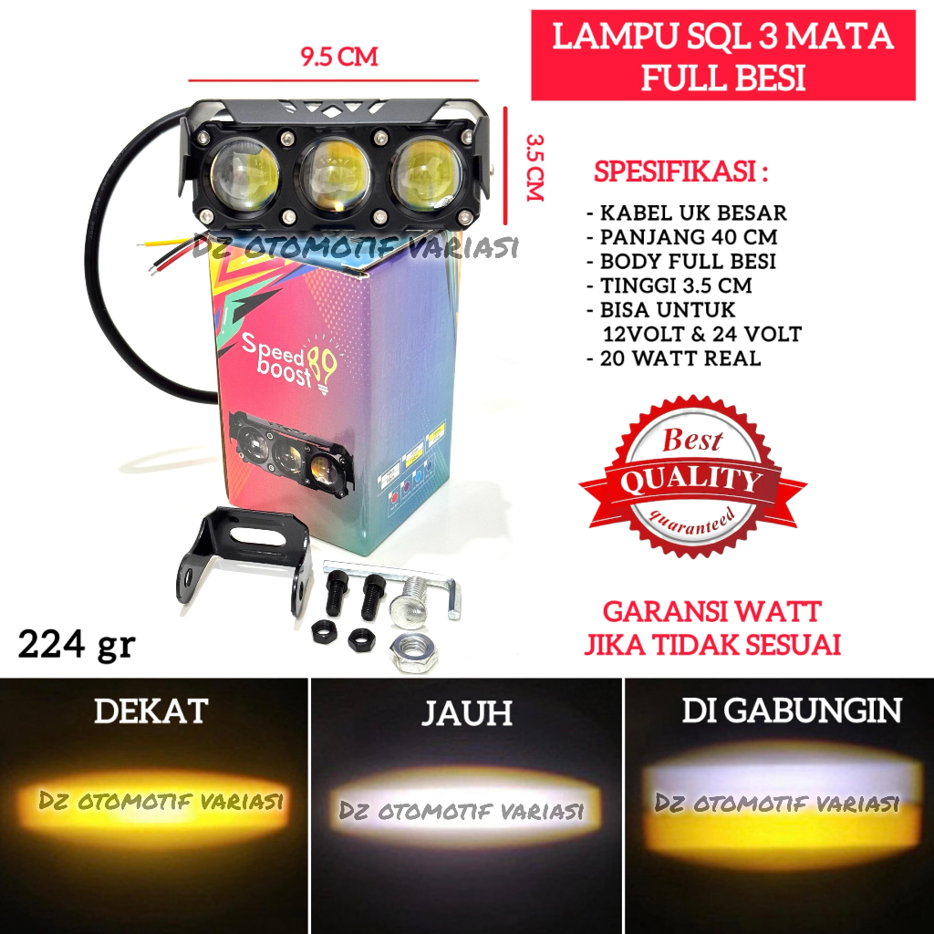 Lampu Tembak Laser SQL 3 Mata 12-24 Volt Nyala Dekat Jauh Kuning Putih Untuk Motor Dan Mobil
