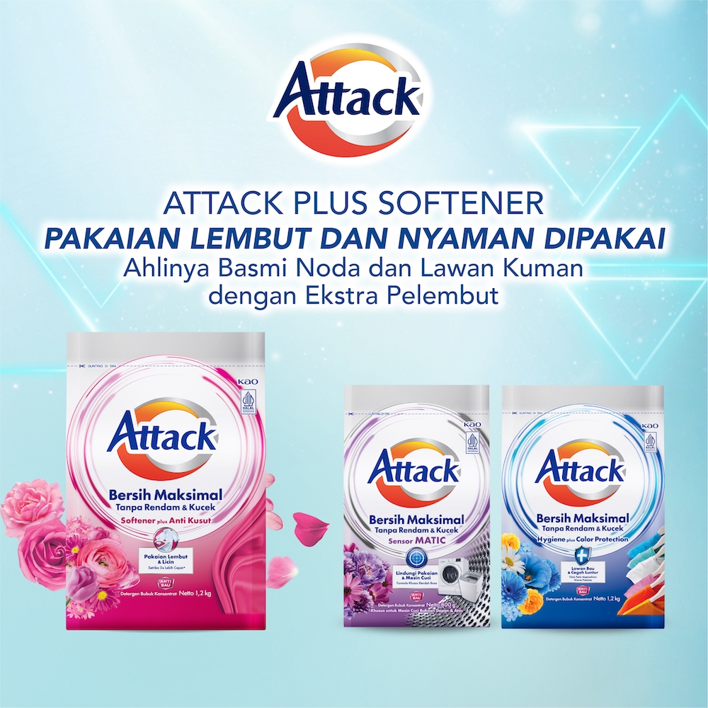 Attack Plus Softener Deterjen Bubuk Semua Mesin Cuci 1200gr Triple Pack