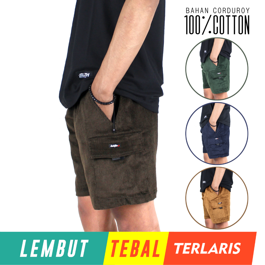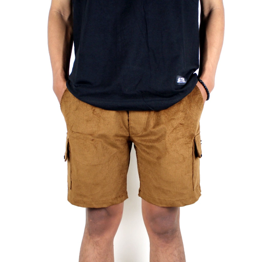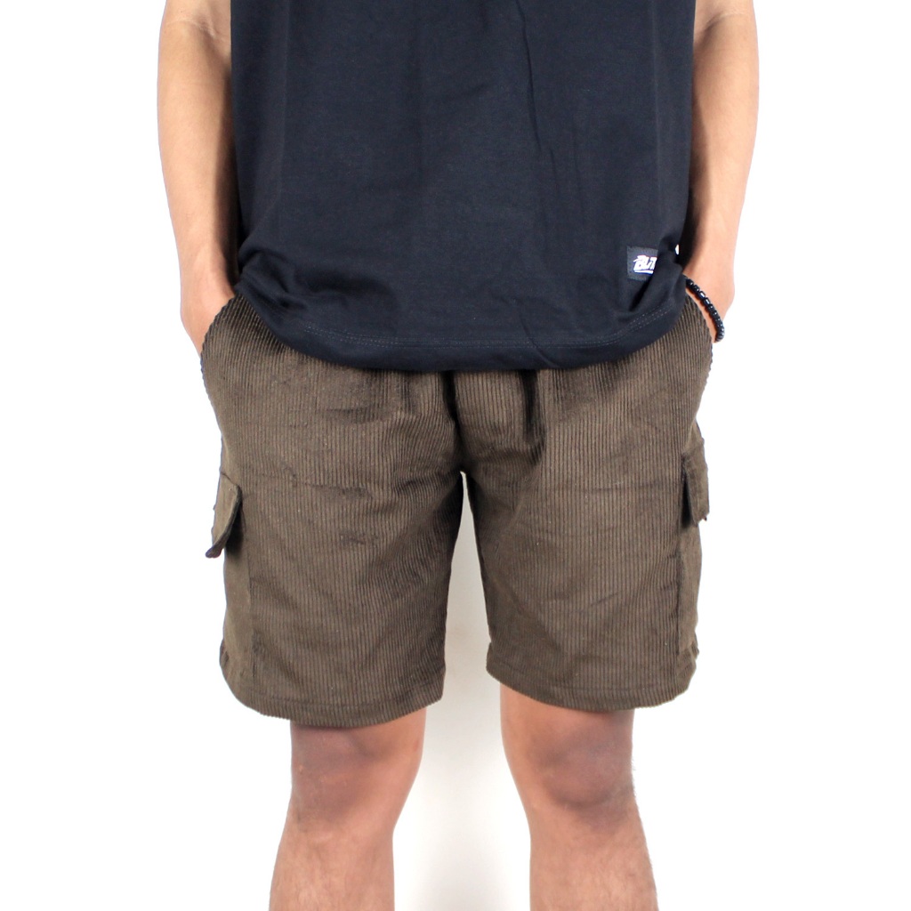 BLITH - CELANA KARDUROY CORDUROY KODORAY CARGO PENDEK COKLAT TUA KATUN TEBAL