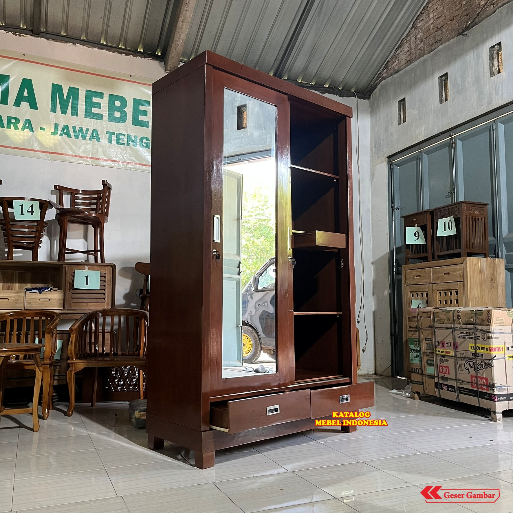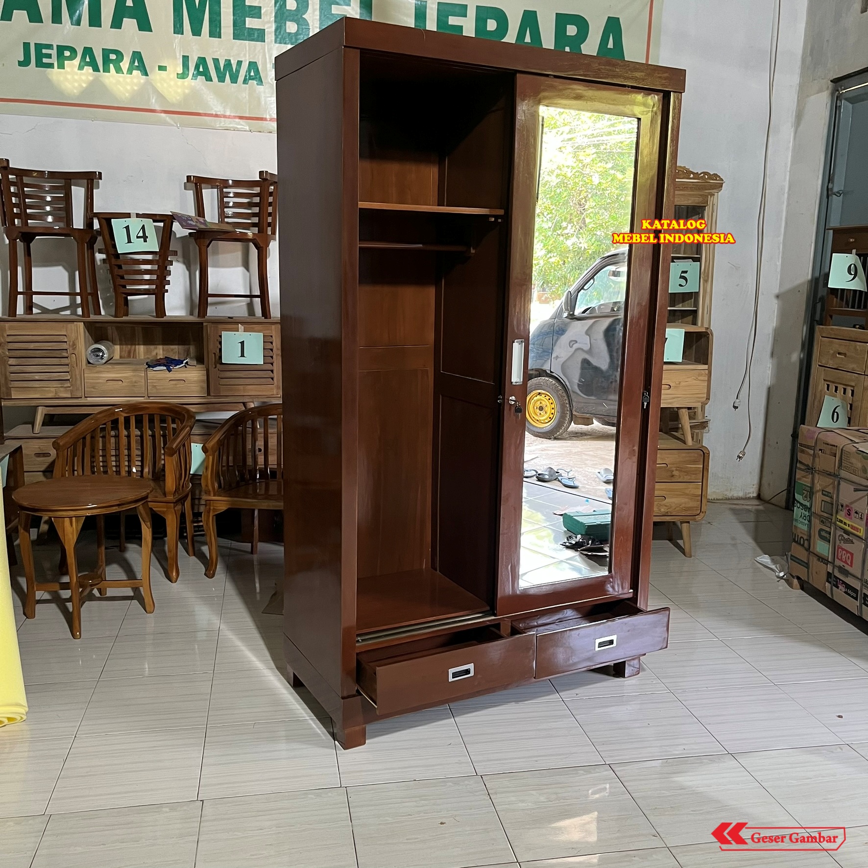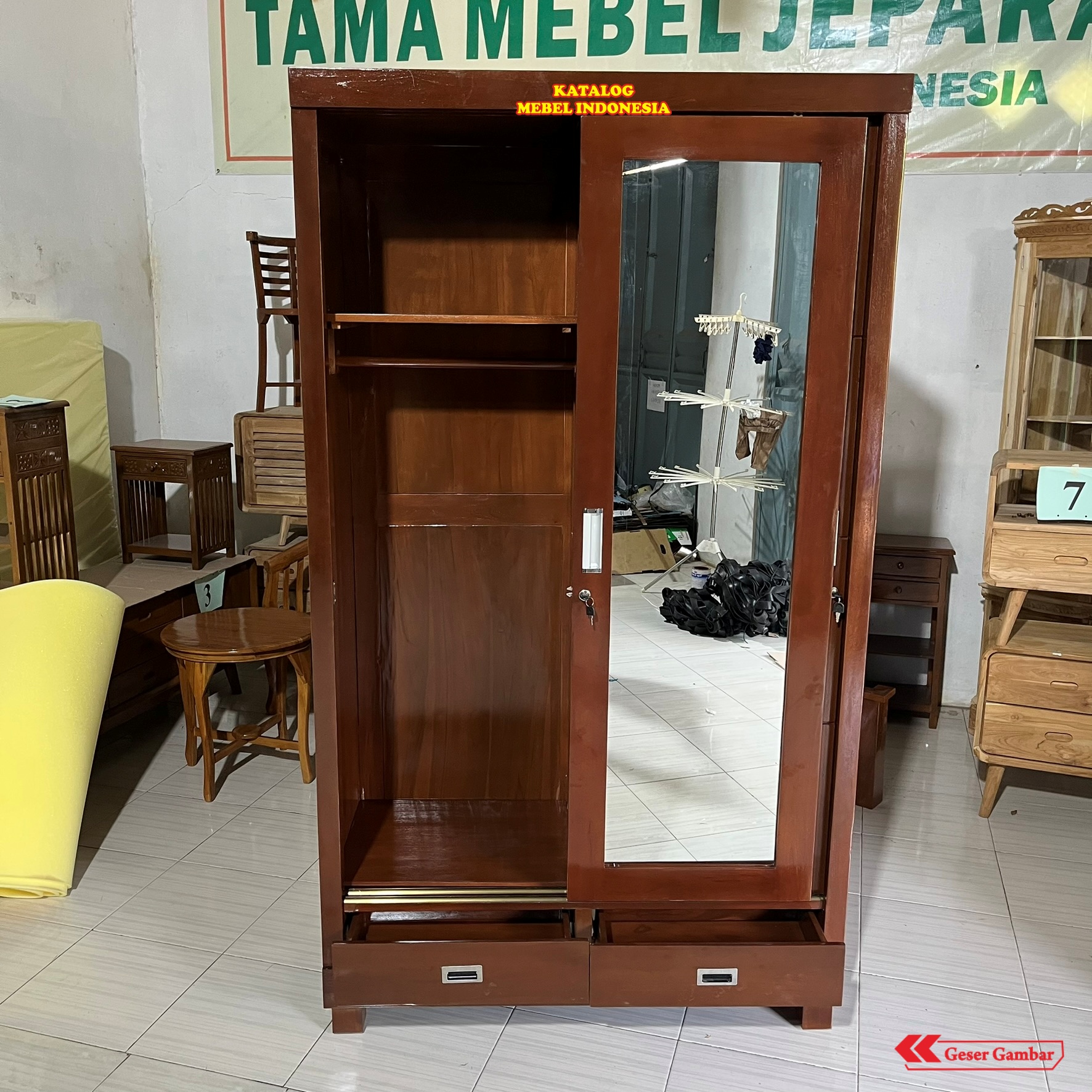Lemari 2 Pintu Lemari Baju Lemari Pakaian Kayu Full Kayu Jati Pintu Sliding