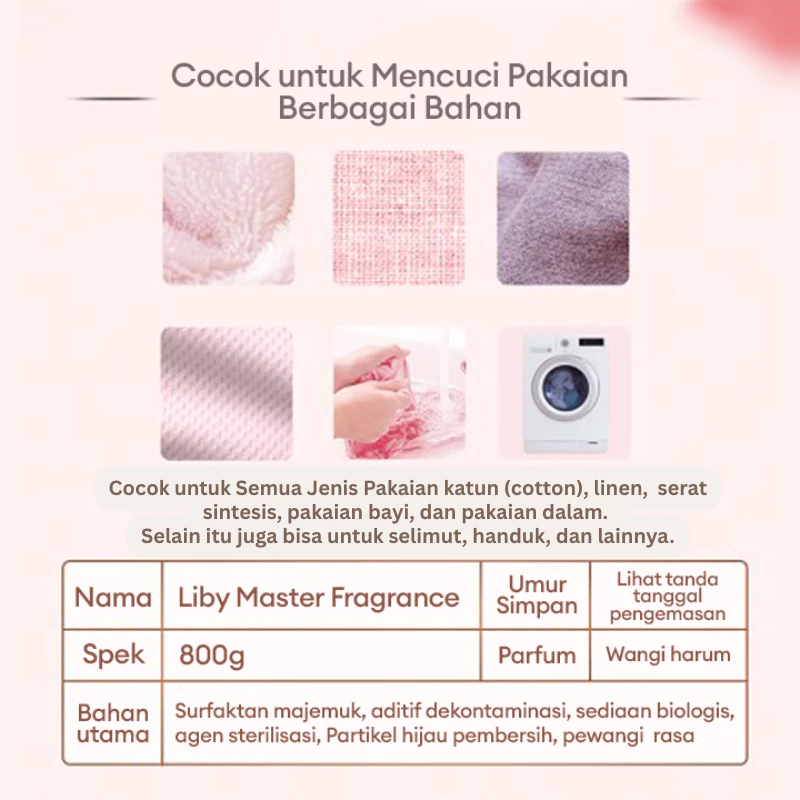 【 BUNDLE 3 PCS 】LIBY Deterjen Bubuk Laundry Powder Detergent Pouch (800gr) - Penghilang Noda, Pelindung Warna Wangi Mawa