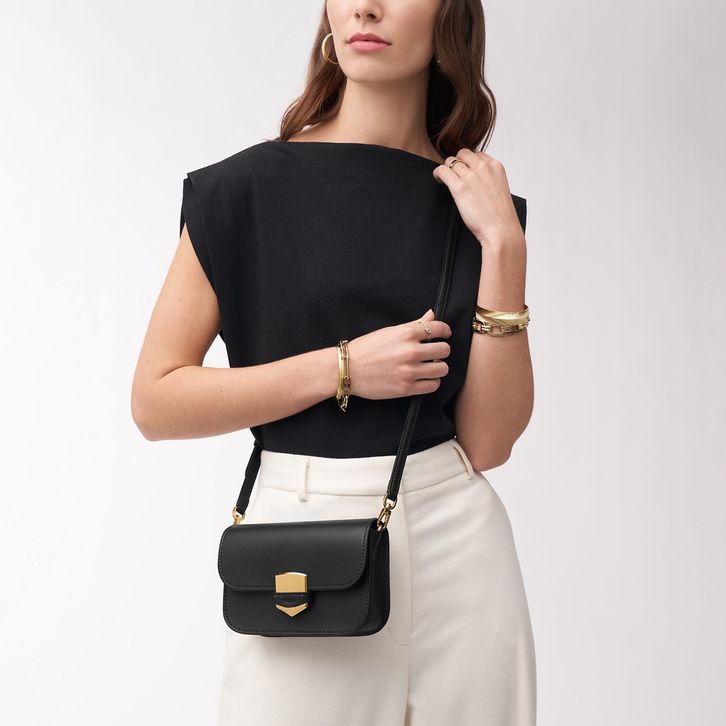 Fossil Lennox Flap Crossbody S Black Leather Tas Wanita - ZB1926-001