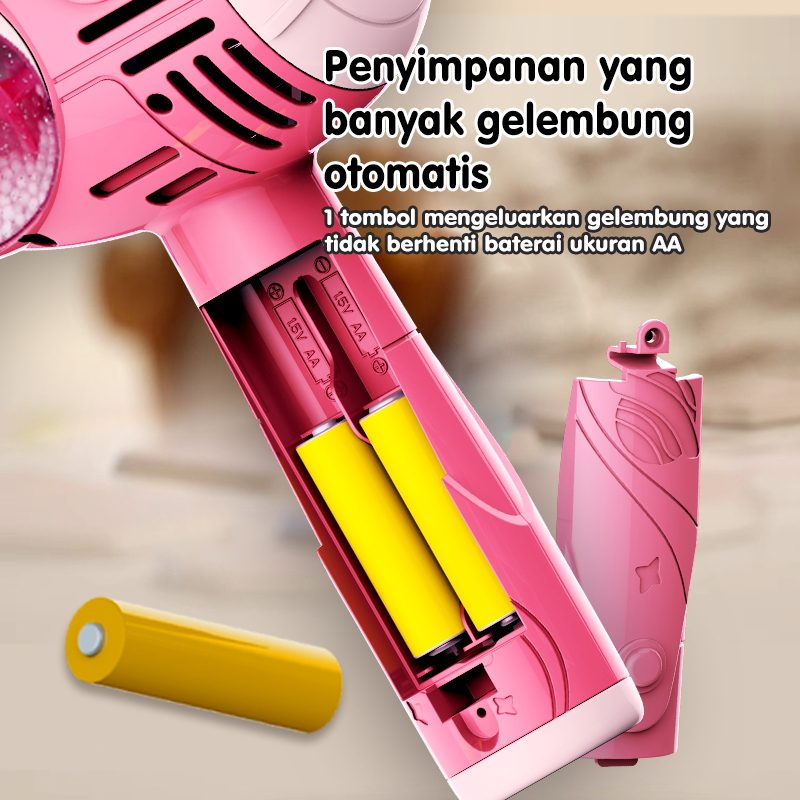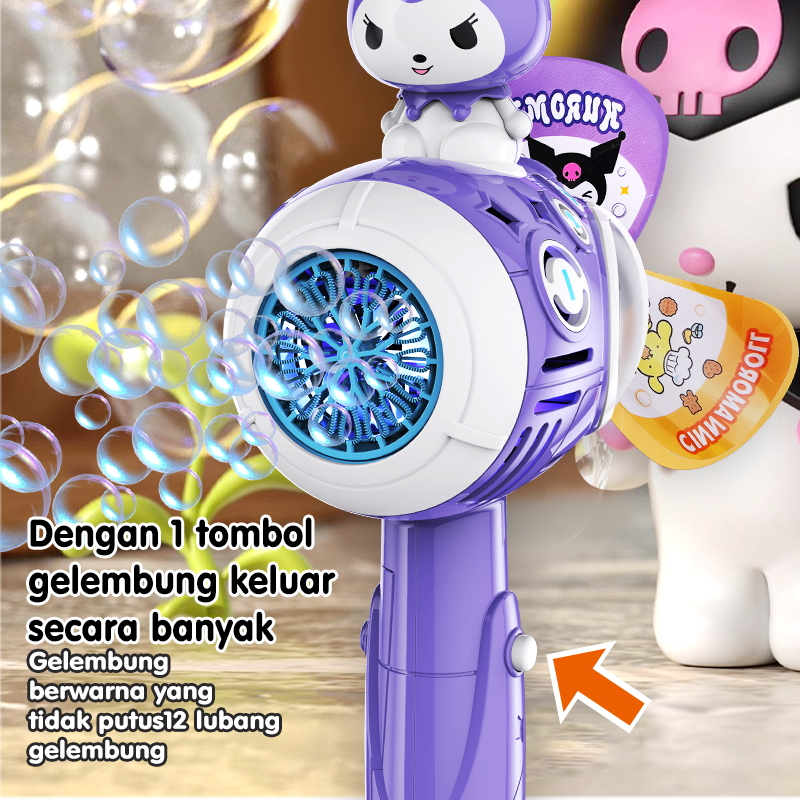 Habibi Mainan Kuromi Bubble Gun, Mesin Tiup Gelembung Otomatis Dengan Efek Cahaya untuk Anak 2024
