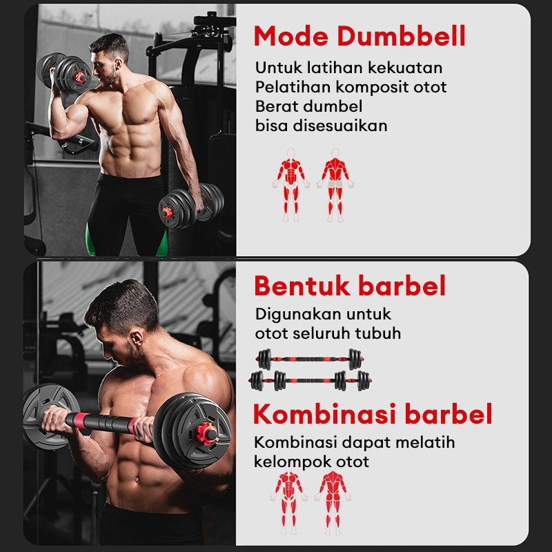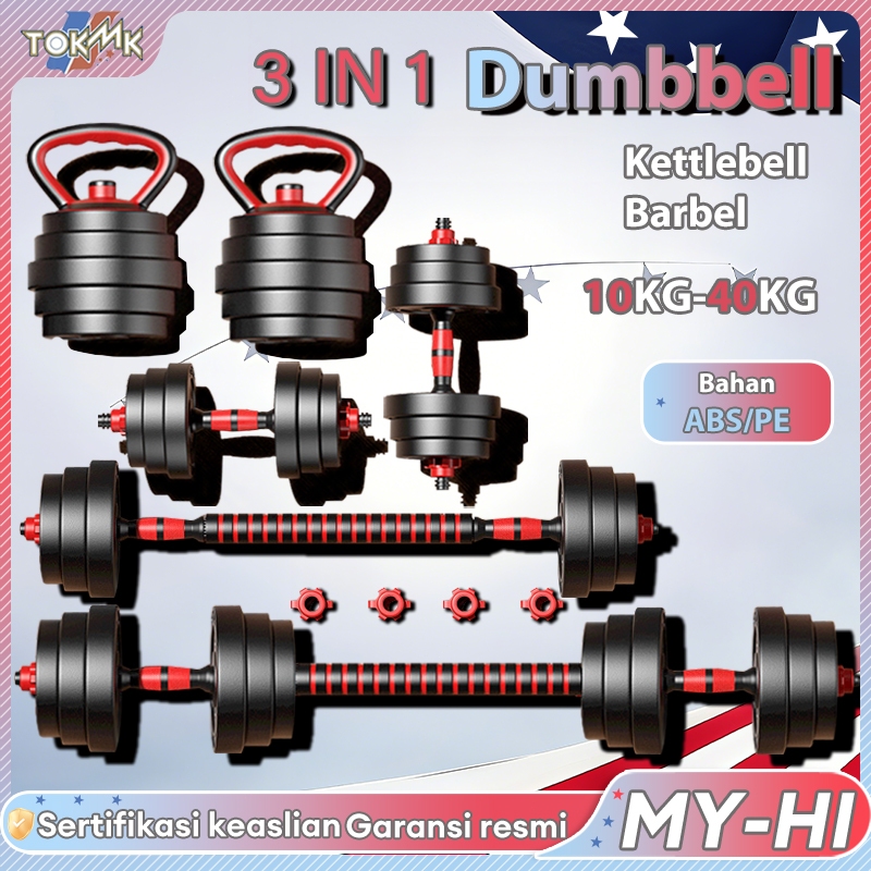 DUMBBELL-KETTLEBELL SET LATIHAN KEKUATAN BARBEL 6 IN1KEBUGARAN SET 10-40KG PERALATAN FITNESS TOKO MIK