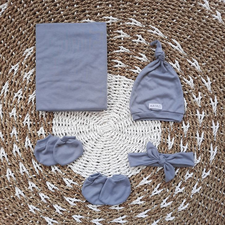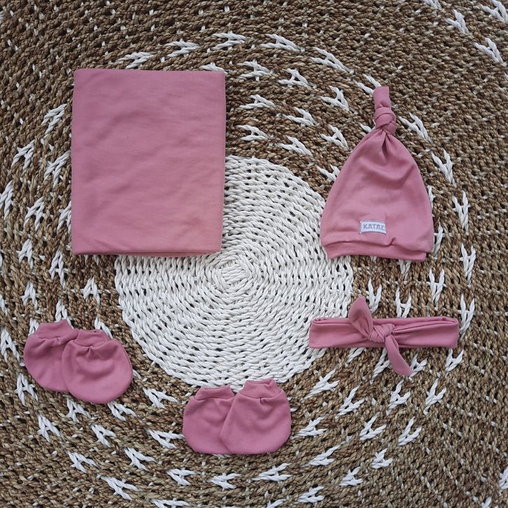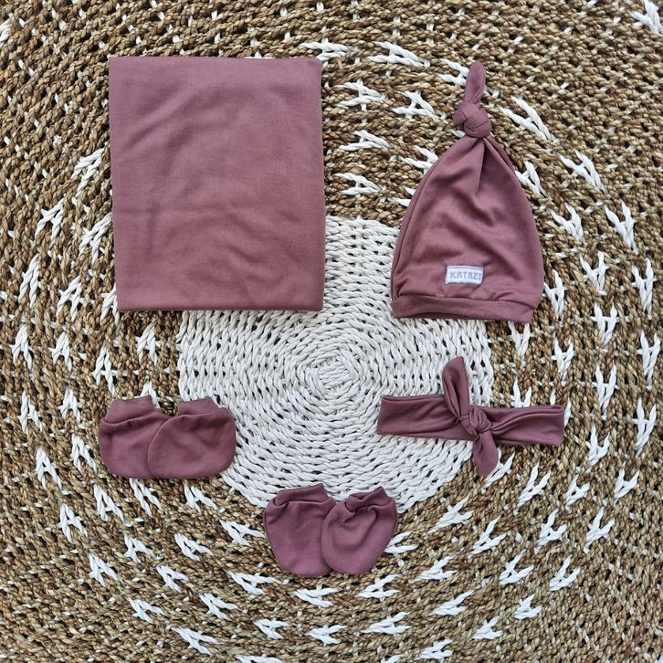 PROMO Paket Baby Newborn 5in1 Bedong Bando Topi Sarung Tangan Kaos Kaki Bayi Baru Lahir Perempuan Dusty