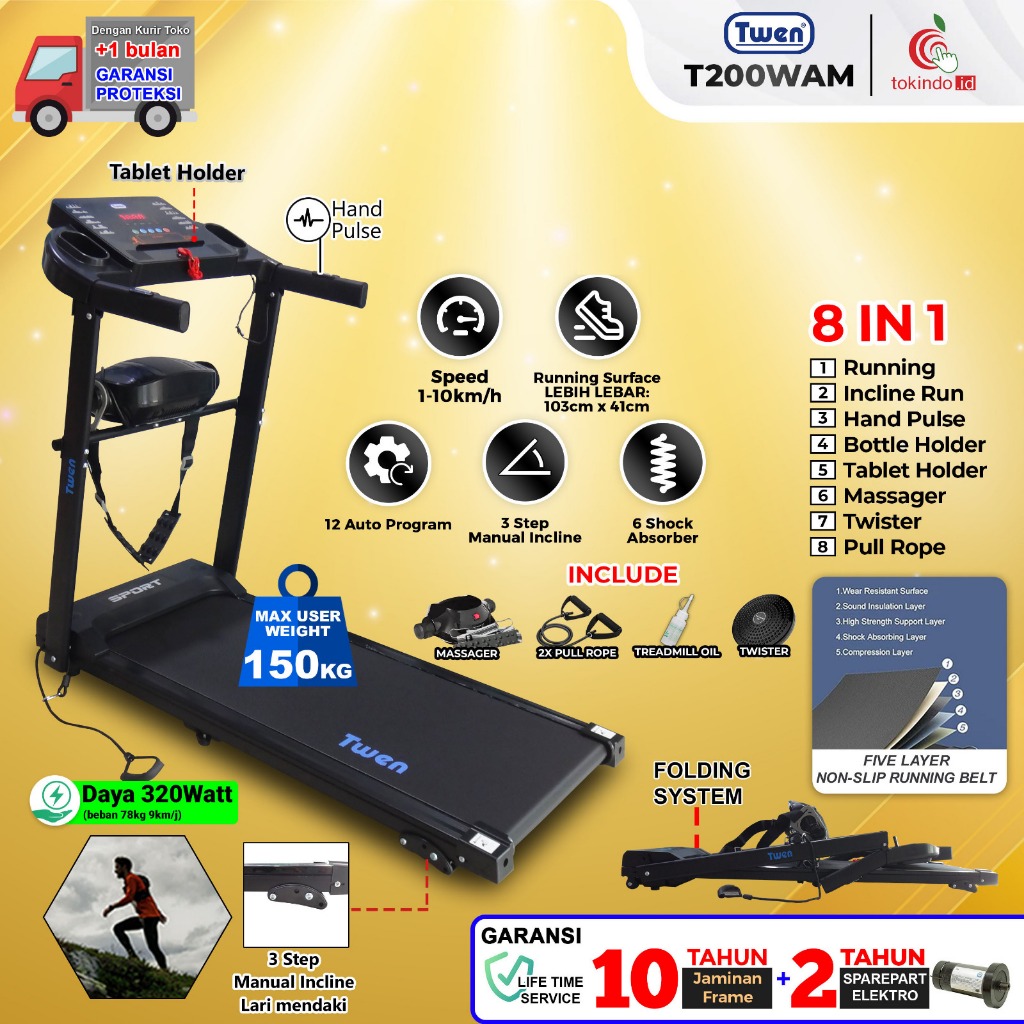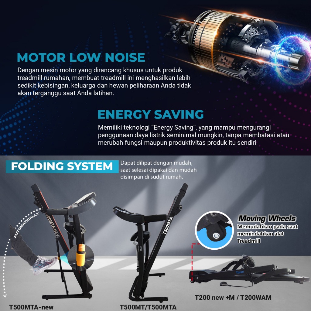 TWEN T200WAM T200 NEW+M T500MT T500MTA TREADMILL PORTABLE / TREADMILL ELECTRIC LOW WATT / TREADMIL ELEKTRIK ALAT OLAHRAGA