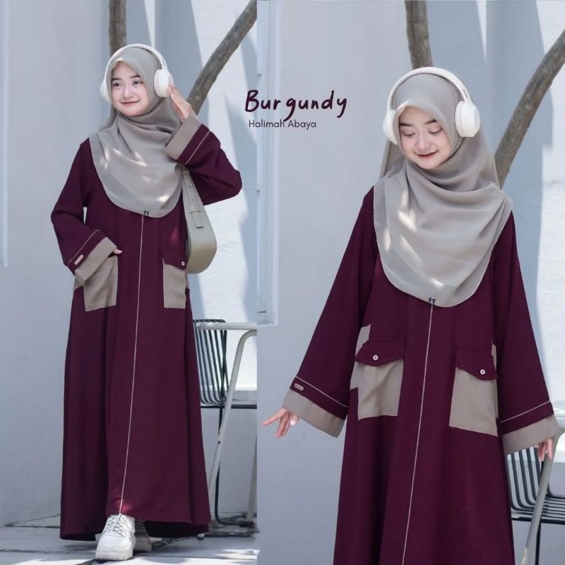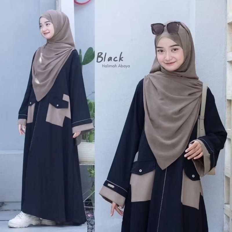 Gamis Halimah Abaya Hitam Black Remaja 12 13 14 15 16 17 Tahun Bahan Crinkle Airflow Kombinasi Saku Abaya Remaja Aesthet