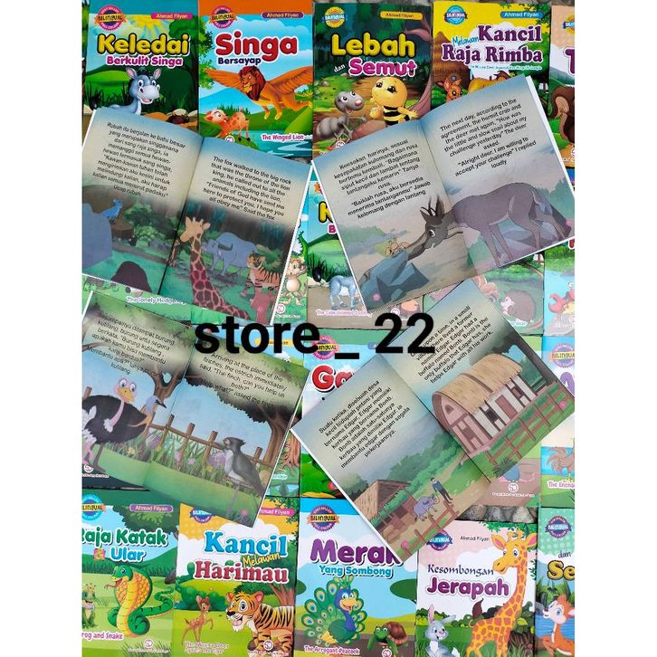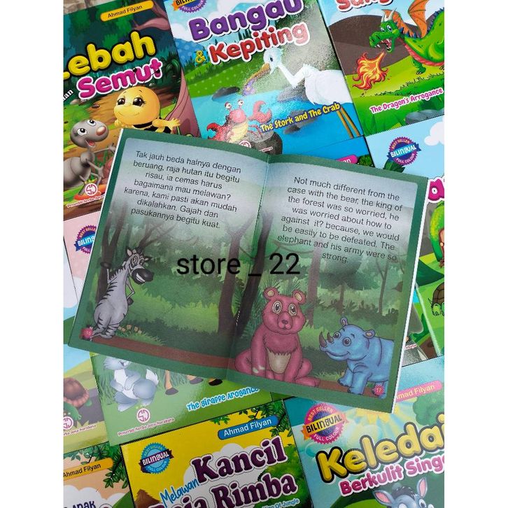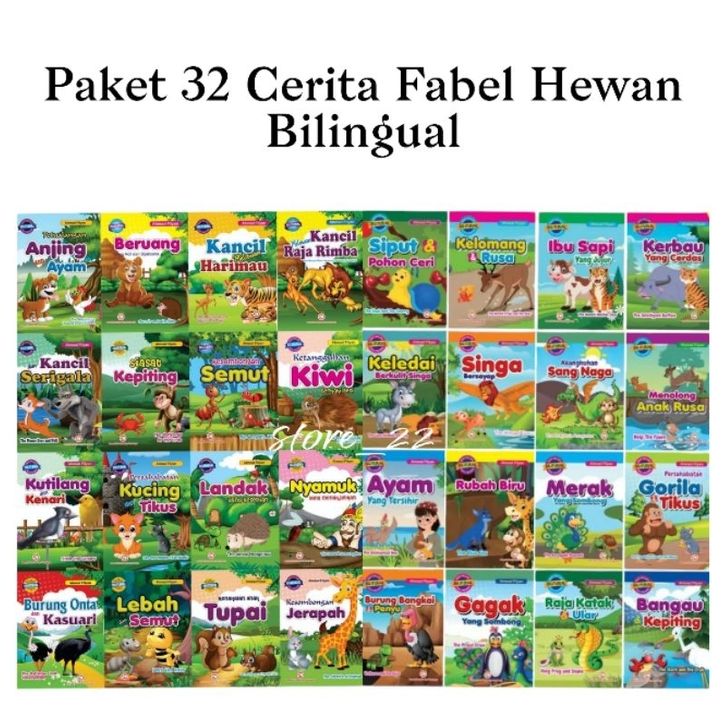 1 Paket Isi 32 Buku Bilingual Fabel Cerita Binatang Untuk Anak Paud TK Indonesia Inggris