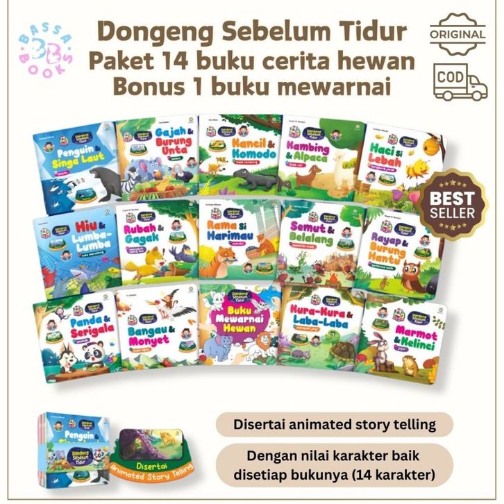 Ready Stock Dongeng Sebelum Tidur paket 14 buku cerita + 1 buku mewarnai Buku Cerita Bergambar