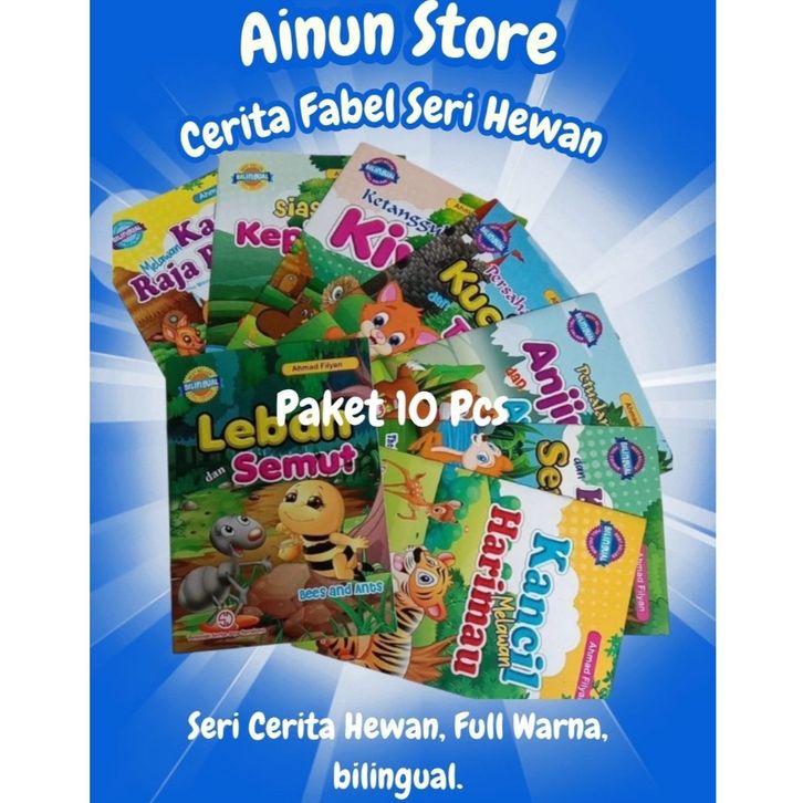10 Pcs Buku Dongeng Fabel Bilingual Cerita Hewan Serba Jaya