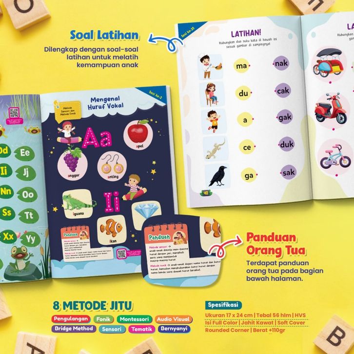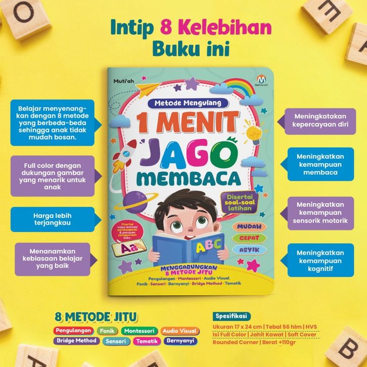 buku Metode Mengulang 1 Menit Jago Membaca belajar tk baca montessori anak ejaan Ziyadbooks