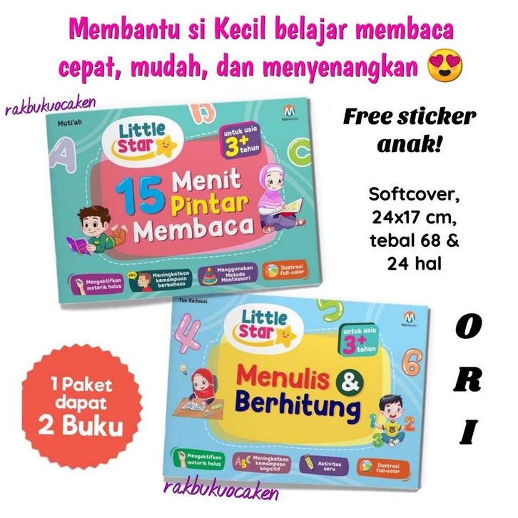 Buku Little Star 15 Menit Pintar Membaca Menulis Berhitung 1 Paket dapat 2 Buku