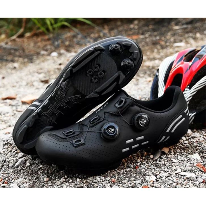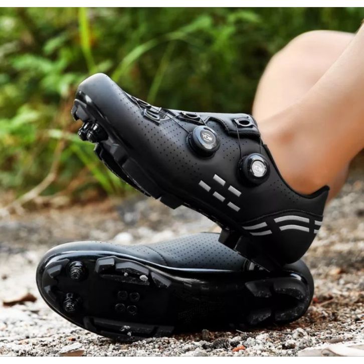Sport Sepatu Sepeda Cleat MTB Bicycle Shoes Cleats Mountain Bike Sepatu Gowes Cleat MTB 2 BOA Hitam