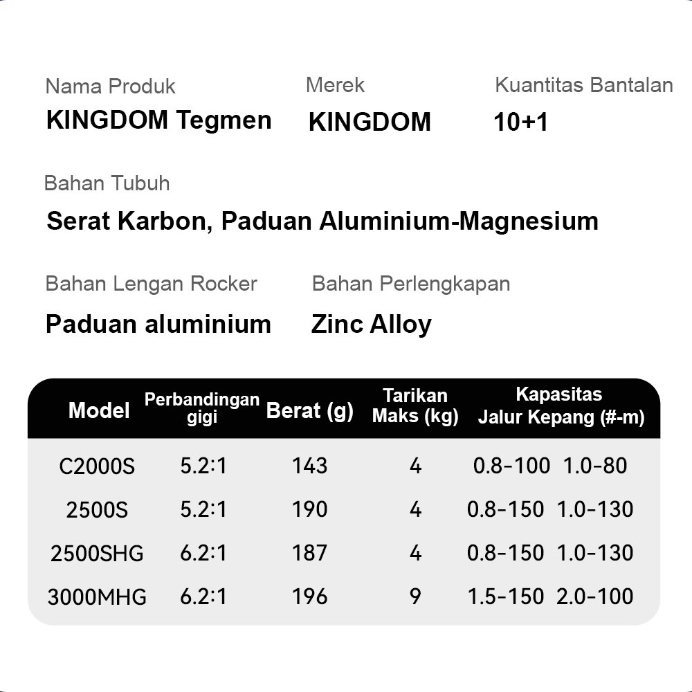 Kingdom TEGMEN Gulungan Pancing Putar Karbon 2000 2500 3000 Gulungan Pancing Ringan Kumparan 6.2:1 5.2:1 Gulungan Putar