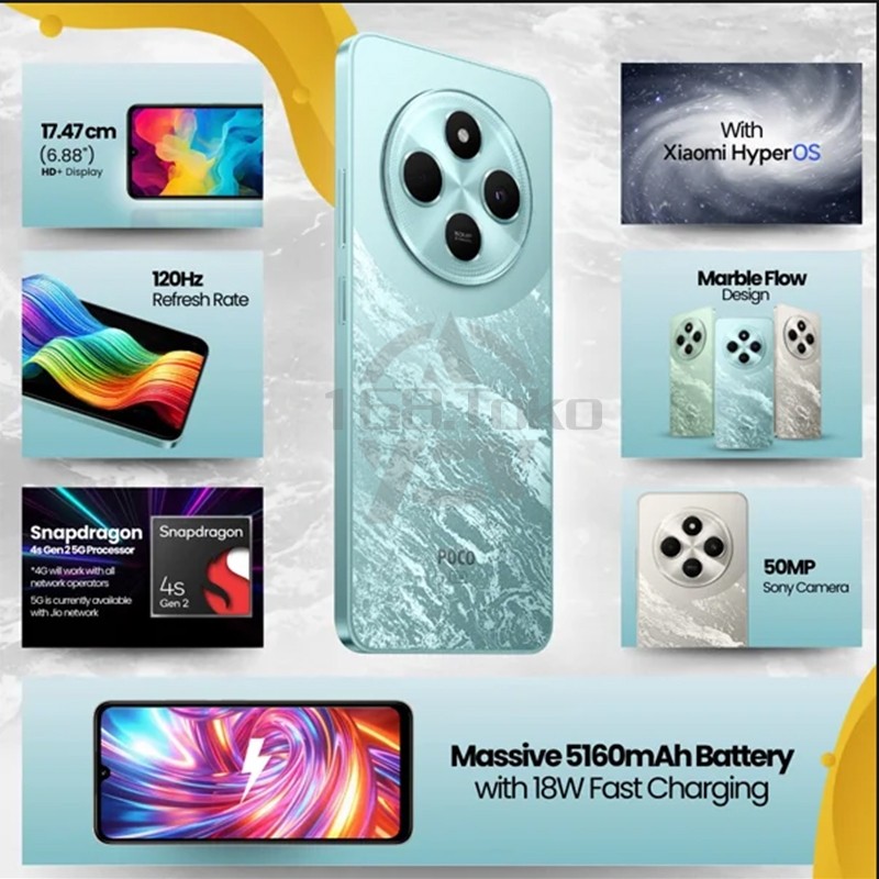 hp xiaomi poco c75 ram 8/256gb NFC Baru Tersegel Original AI kamera HD+ Garansi Resmi 12Bulan