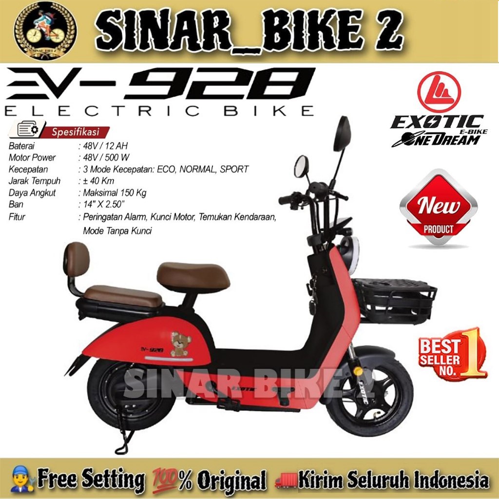 [Star]Sepeda Listrik EXOTIC EV 928 // EXOTIC EB 929 BATRAI LITHIUM BY PACIFIC 500 Watt Electric E Bike
