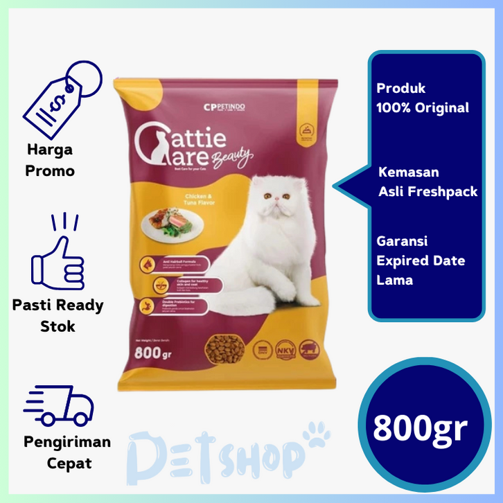 CATTIE CARE BEAUTY 800G PREMIUM MAKANAN KUCING PAKAN CHICKEN TUNA ENAK