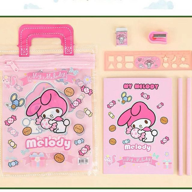 Alat Tulis Set 6 In 1 Free Bag Paket Alat Tulis Karakter Pensil Penghapus Penggaris AT31