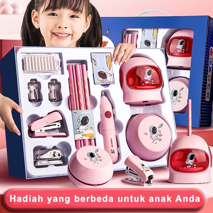 Electric Stationery Set / Set Alat Tulis Elektrik Rautan Penghapus Vacuum Pensil 11 In 1/Set Alat