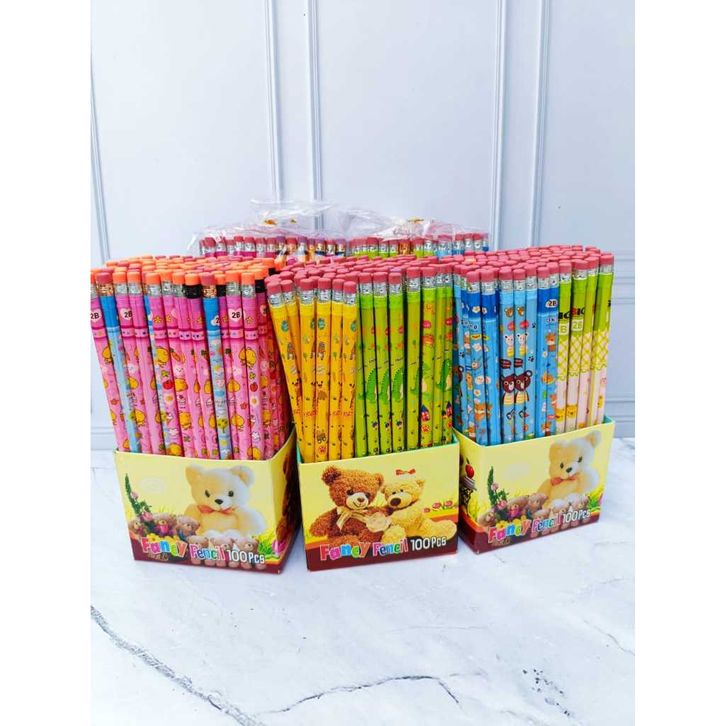 ISI 50 / 25 PCS PENSIL 2B KARAKTER FANCY ADA PENGHAPUS