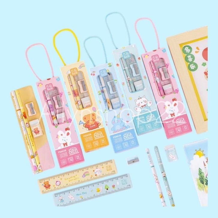 Pensil Set Kotak isi 5 pcs /Alat Tulis Set Dengan Karakter Lucu