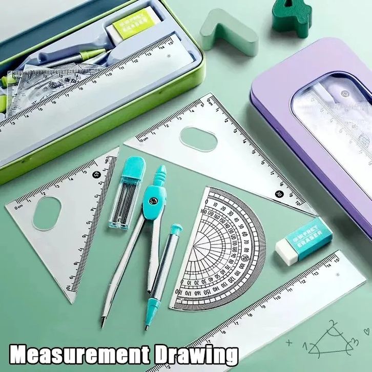 DOTDING 7Pcs Set Penggaris Ujian & Kantor - Set Alat Ukur Lengkap Untuk Sekolah/Kantor Ujian