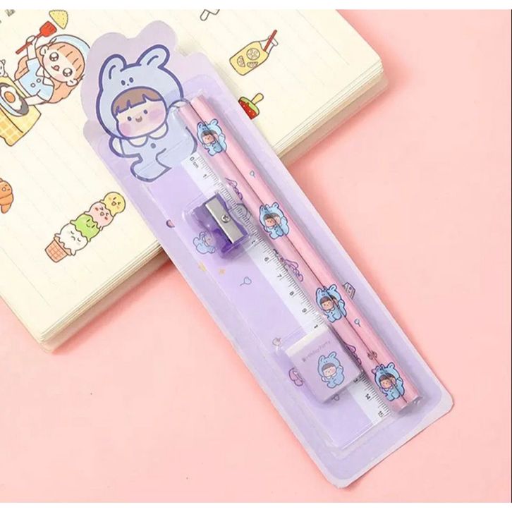 7S Pensil Set Alat Tulis Anak Karakter Lucu Alat Tulis Set 5in1 Paket Alat Tulis 5in1