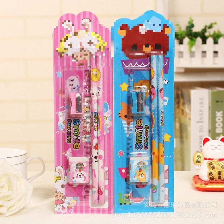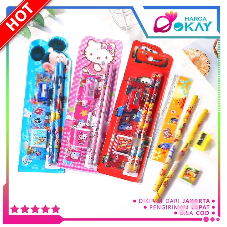 HO Stationery Set 5 in 1 Alat Tulis Anak Sekolah Penghapus penggaris Pensil Serutan Karakter Lucu