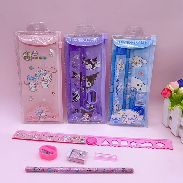 5in1 Pensil Set Alat Tulis Anak Lucu / Study Set Penghapus Untuk Tempat Pensil Buku Tulis - GG0415