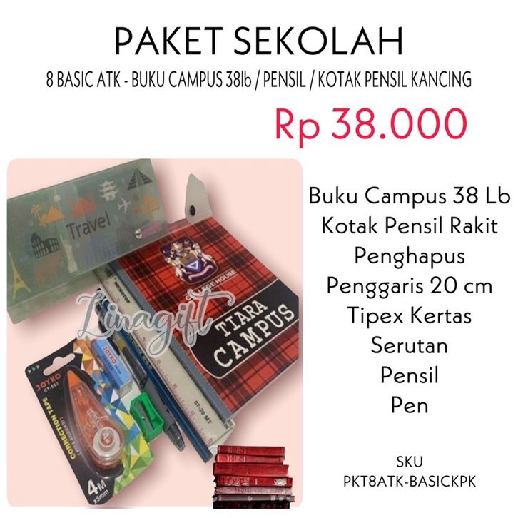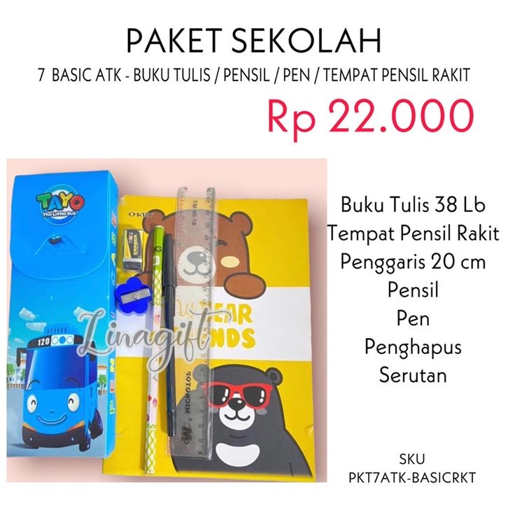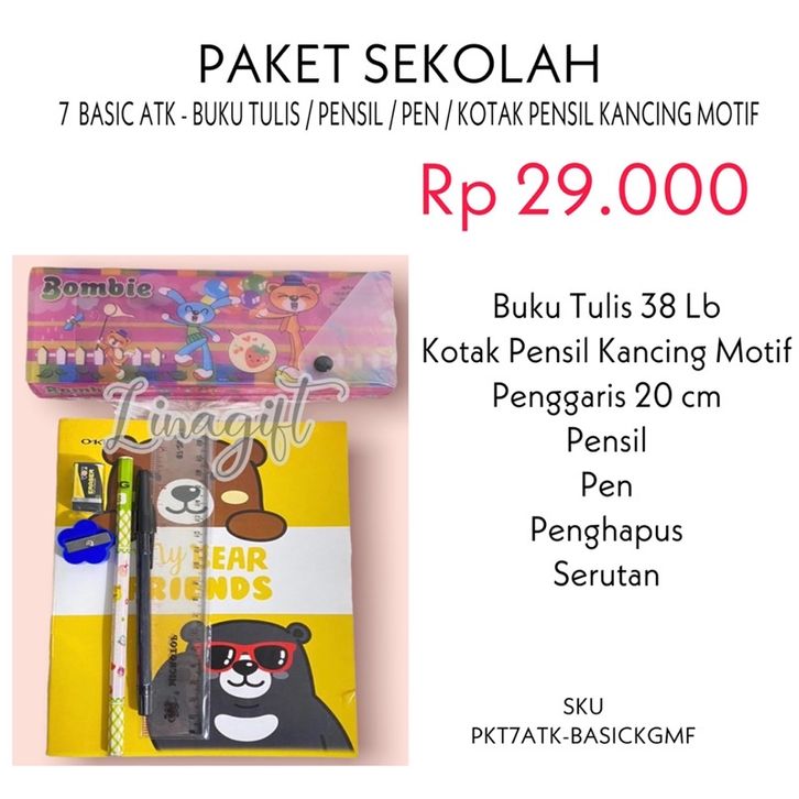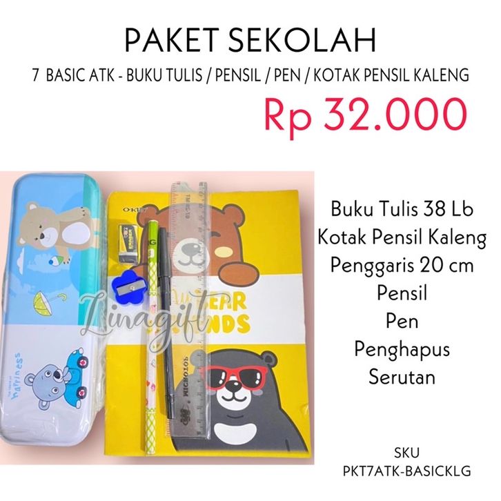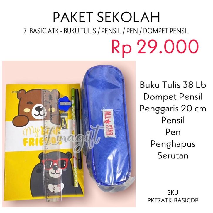Set Paket Basic STATIONERY SET 7 MACAM - ALAT TULIS SEKOLAH - SOUVENIR GOODIE BAG HADIAH KADO