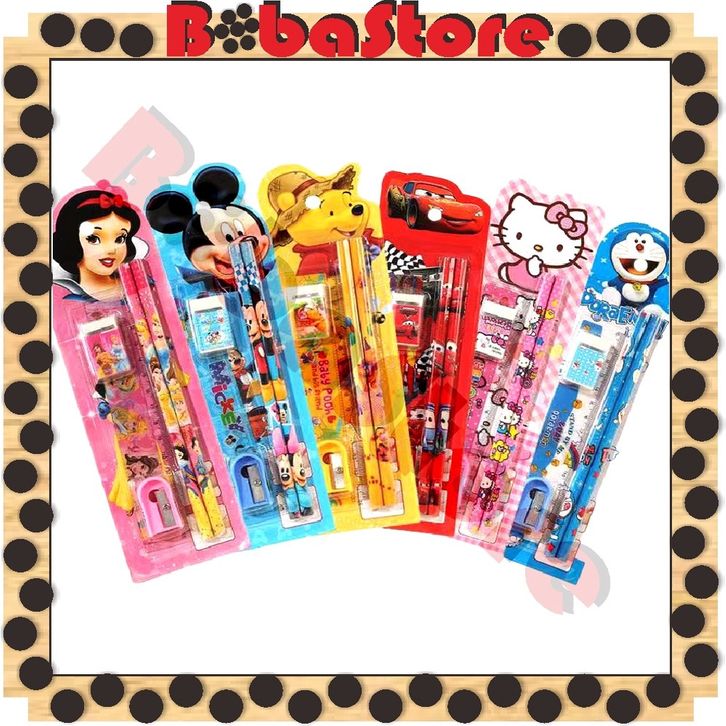 Boba Stationery Set 5 in 1 Alat Tulis Anak Sekolah Penghapus penggaris Pensil Serutan Karakter Lucu
