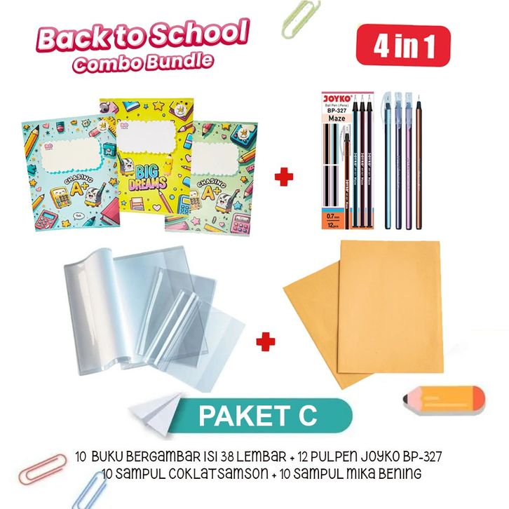 BacktoSchool Combo Bundle Paket Alat Tulis 4IN1 Buku Tulis Pulpen Pen Sampul Coklat Samson Sampul