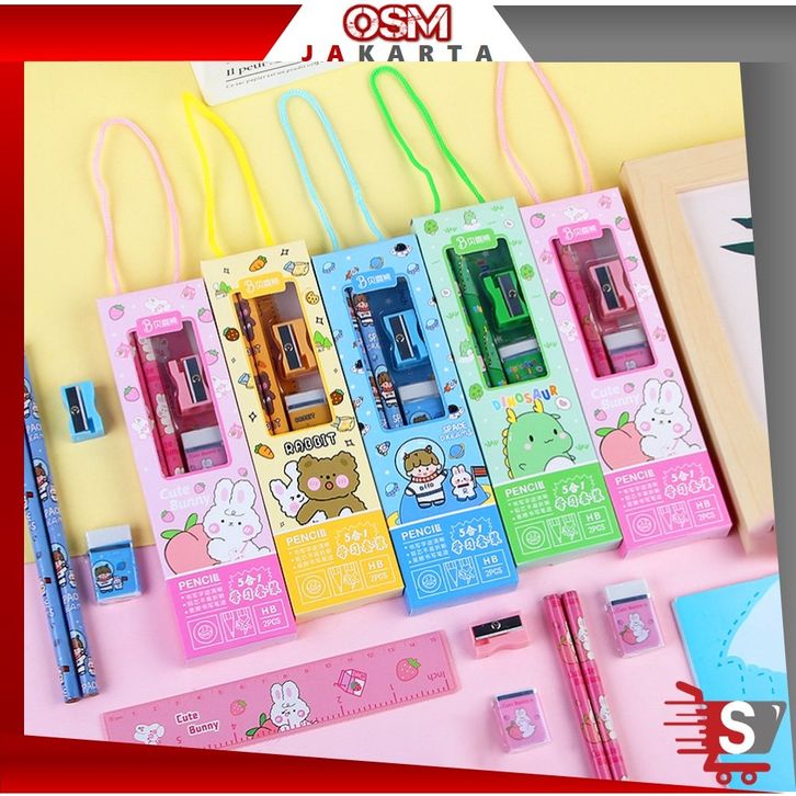 OSM JKT S5989 Set Alat Tulis 5 in 1 / Set Alat Tulis Kartun / Set Alat Tulis 5 in 1 Lucu / Set Alat
