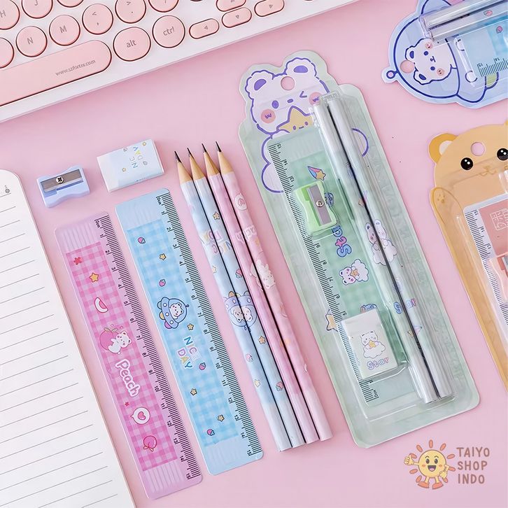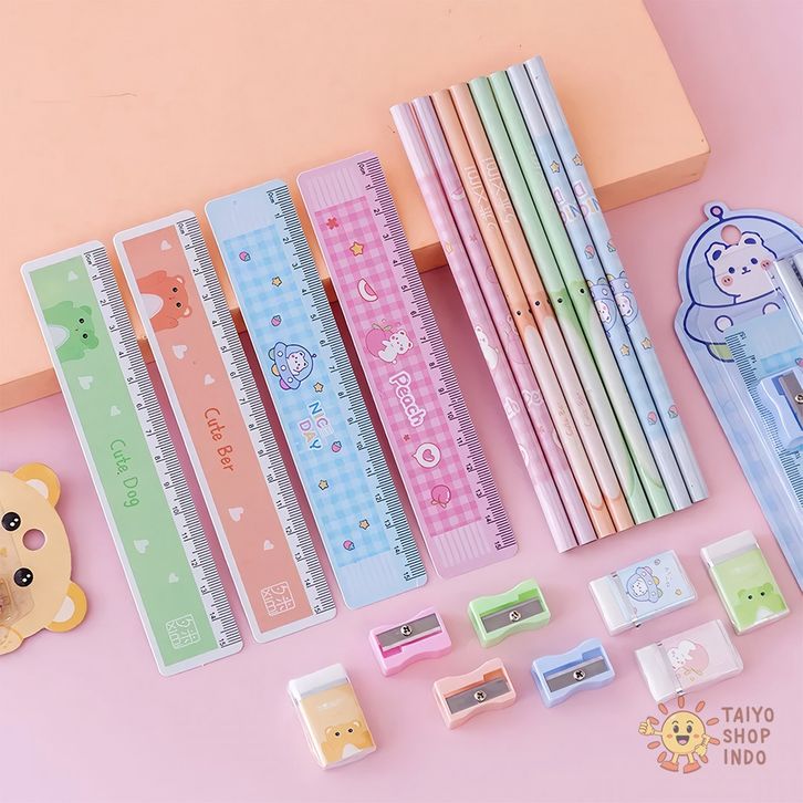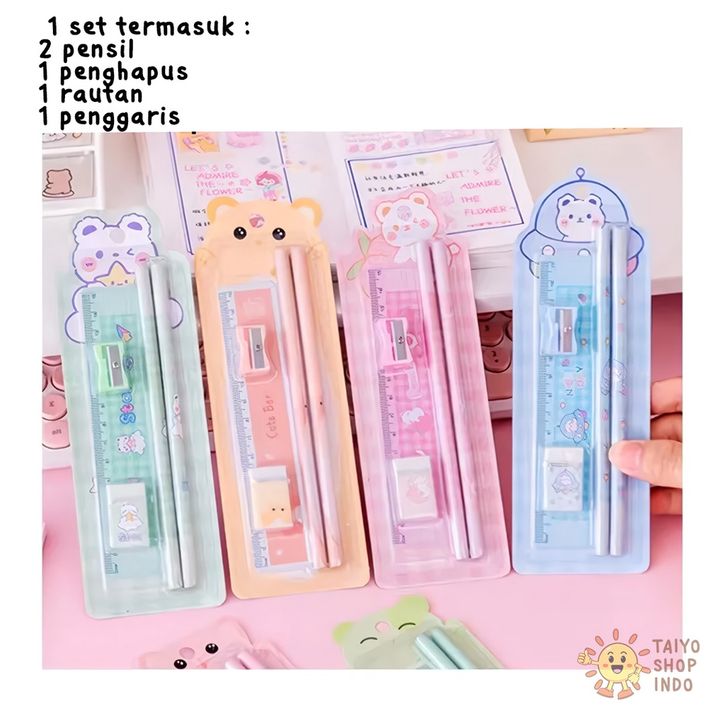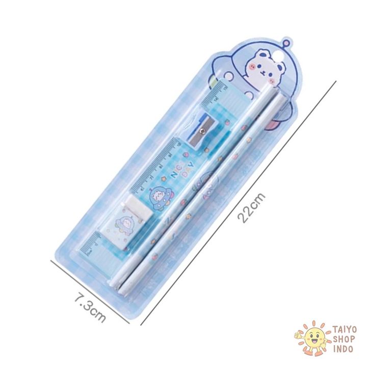 TAIYO Alat Tulis Set Anak 5IN1 Pensil Penghapus Rautan Penggaris Pencil Ruler Eraser Sekolah ATK