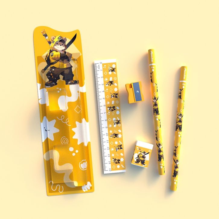 Aimilo Stationery Set 5 in 1 Alat Tulis Anak Sekolah Penghapus penggaris Pensil Serutan Karakter