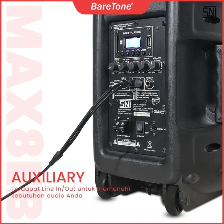 Baretone MAX08EB Speaker Portable Aktif MAX8EB 8 Inch TWS Bluetooth 2 Mic Wireless Original