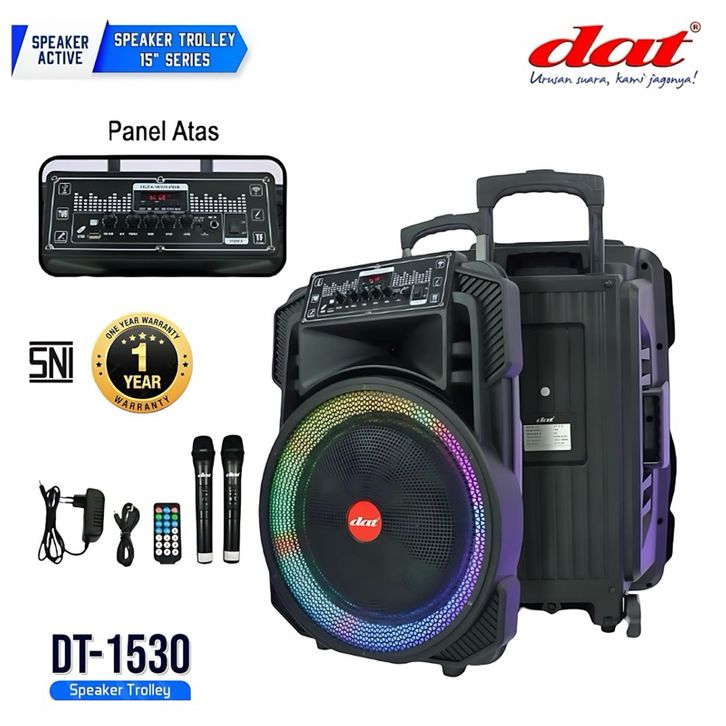 Speaker DAT DT-1530 speaker bluetooth portabel 15inch speaker aktif full bass dilengkapi 2mic wireles karaoke