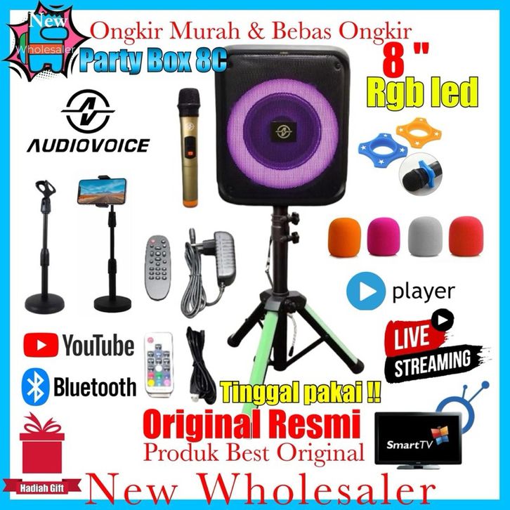 speaker portable Party box 8c New Original 8 inch Rgb led Siap pakai lengkap