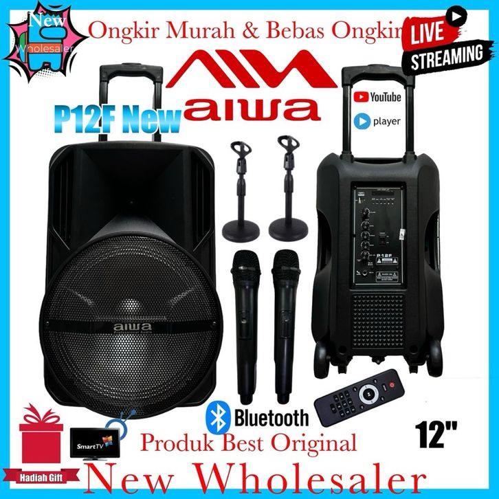 Speaker Portable karaoke Aiwa p12F New Original 12inch Led rgb garansi 1 tahun