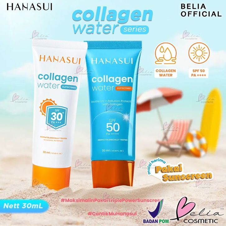 ❤ BELIA ❤ Hanasui Collagen Water Sunscreen SPF 30 | SPF 50 |30ml | Tabir Surya | Sunblok | BPOM
