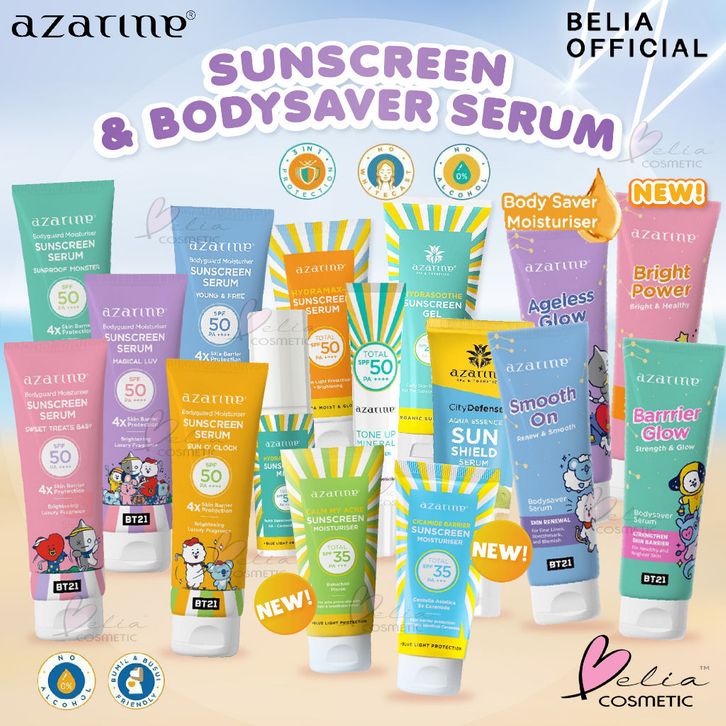 ❤ BELIA ❤ AZARINE Aqua Essence Sun Shield Serum SPF 50 PA+++ & Hydrasoothe Sunscreen Gel SPF45+++