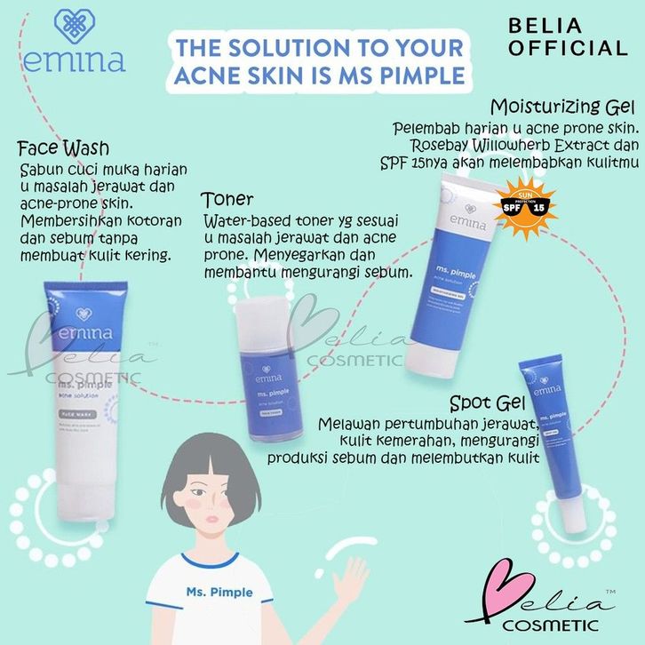 ❤ BELIA ❤ EMINA Ms Pimple Acne Solution Series Sebum Fighter | Face Wash Toner Moisturizing Gel Spot