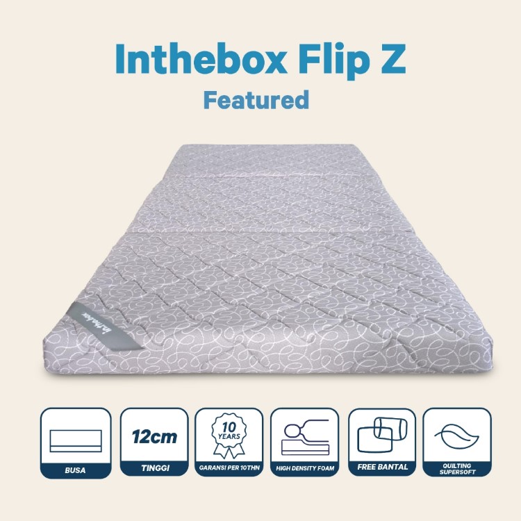 Kasur Lipat In The Box Flip Z Tebal Empuk Gratis Bantal Cocok untuk Kos Dan Kamar Minimalis