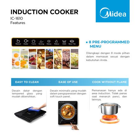 Midea Kompor Induksi IC-1610 Hitam (Free Panci) Induction Cooker Kompor Listrik