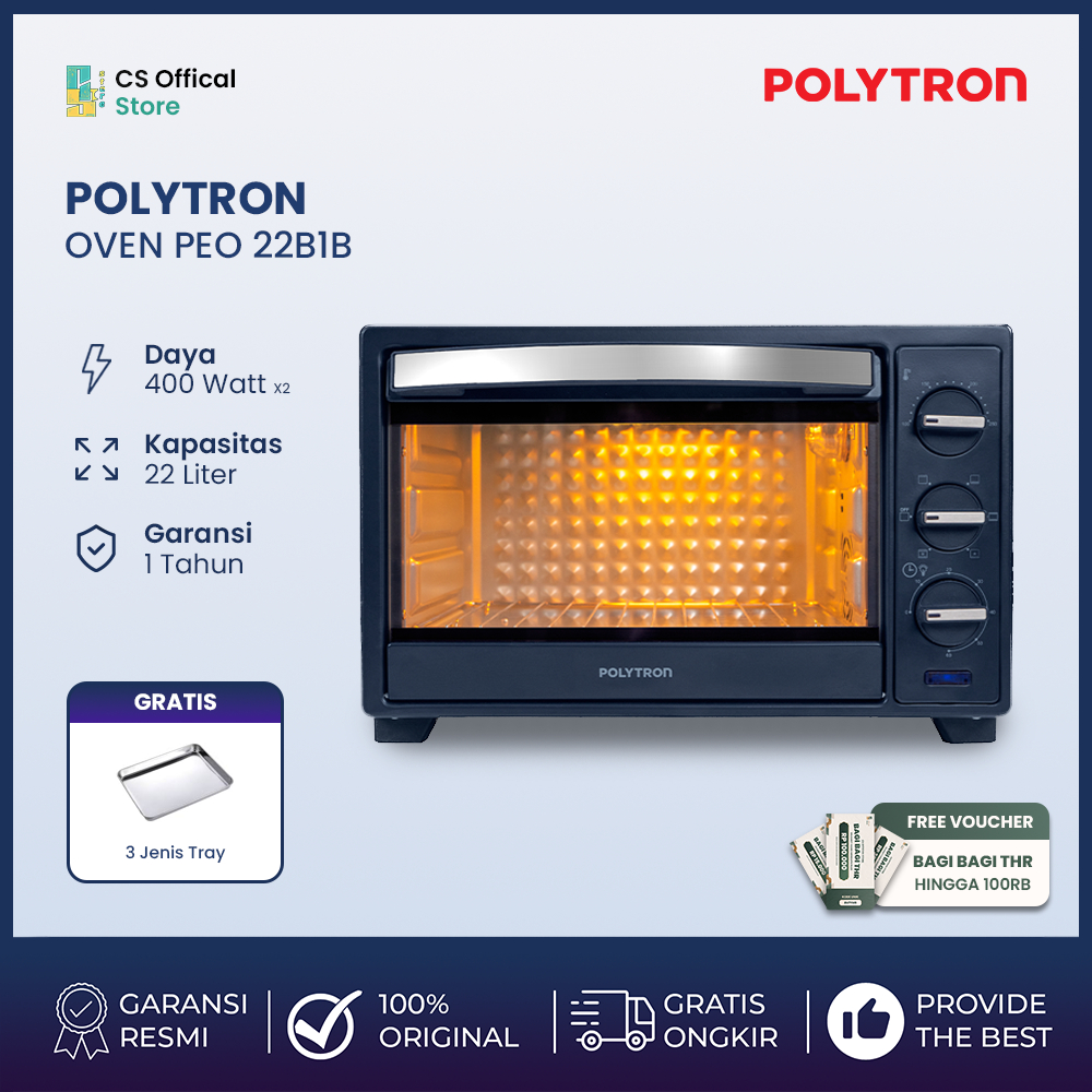 POLYTRON Kitchenmate Oven Listrik 22 Liter PEO 22B1B 5 in 1 Low Watt